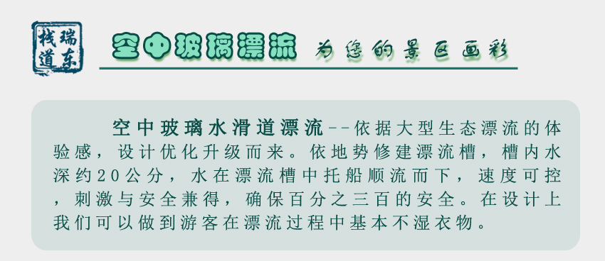 我公司為國內(nèi)首條玻璃滑道設計施工單位,擁有十余年經(jīng)驗,專業(yè)設計承建、投資運營景區(qū)花崗巖滑道、玻璃滑道、水滑道漂流、大型生態(tài)漂流、玻璃吊橋、棧道等項目。聯(lián)系電話:18032092866(微信號同電話)